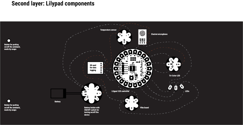 Based on the design insights, I designed, developed, and built a wearable armband with the following key features to promote health and safety at the work environment. This device senses the surrounding temperatures and noise levels in real time, and alerts users when the temperature or noise level exceeds the OSHA health and safety guideline.